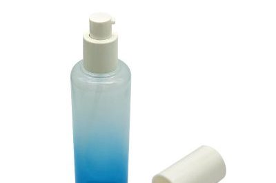 Blue glass lotion pump bottle
